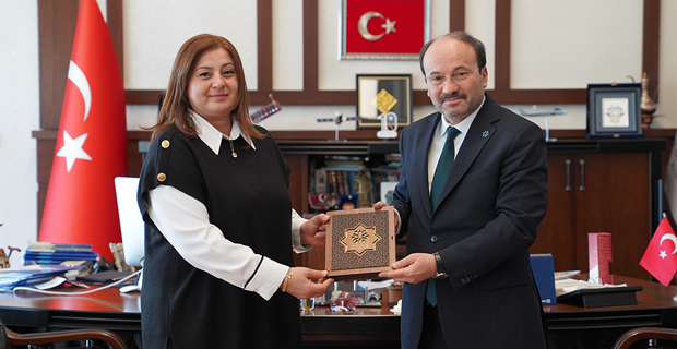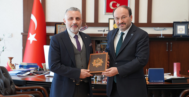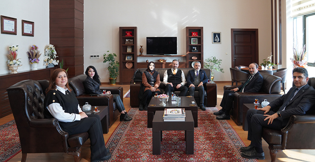 Erzurum Teknik Üniversitesi'nde Türkiye Bursları kapsamında öğrenim gören öğrencilerle görüşmek üzere Erzurum'da bulunan Yurtdışı Türkler ve Akraba Topluluklar Başkanlığı (YTB) heyeti Rektör Prof. Dr. Bülent Çakmak'ı ziyaret etti.