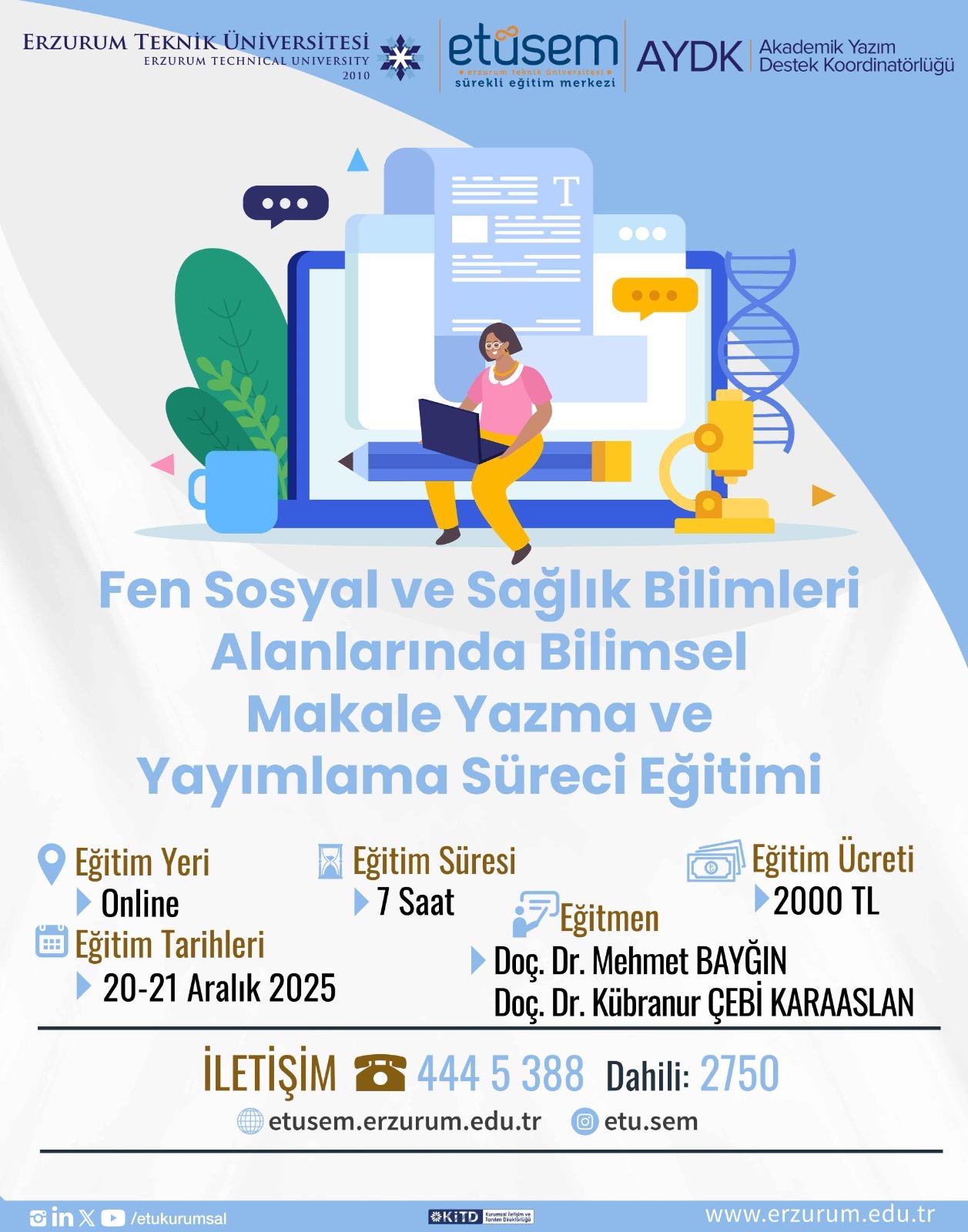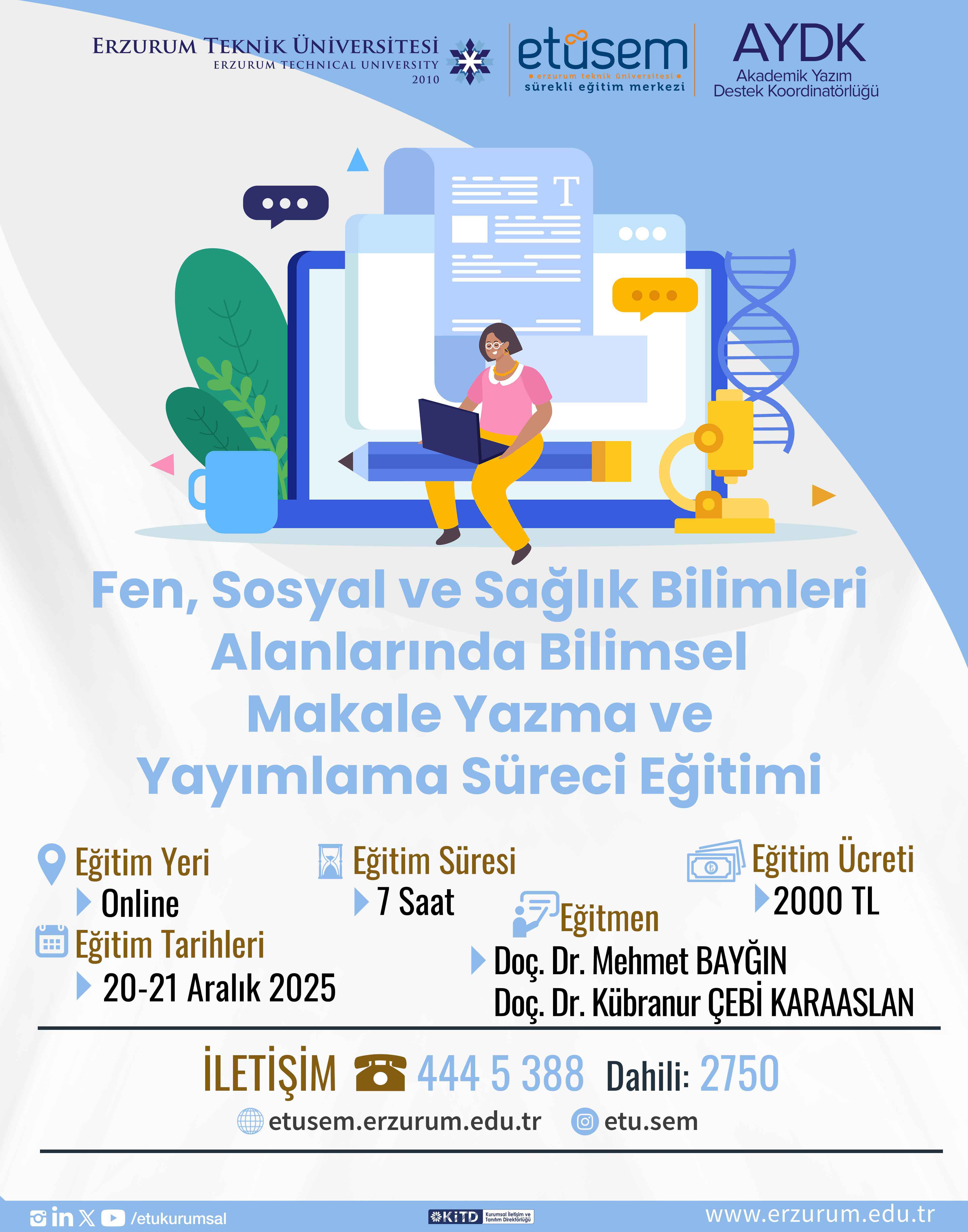 FEN SOSYAL ve SAĞLIK BİLİMLERİ ALANLRINDA BİLİMSEL MAKALE YAZMA ve YAYIMLAMA SÜRECİ EĞİTİMİ