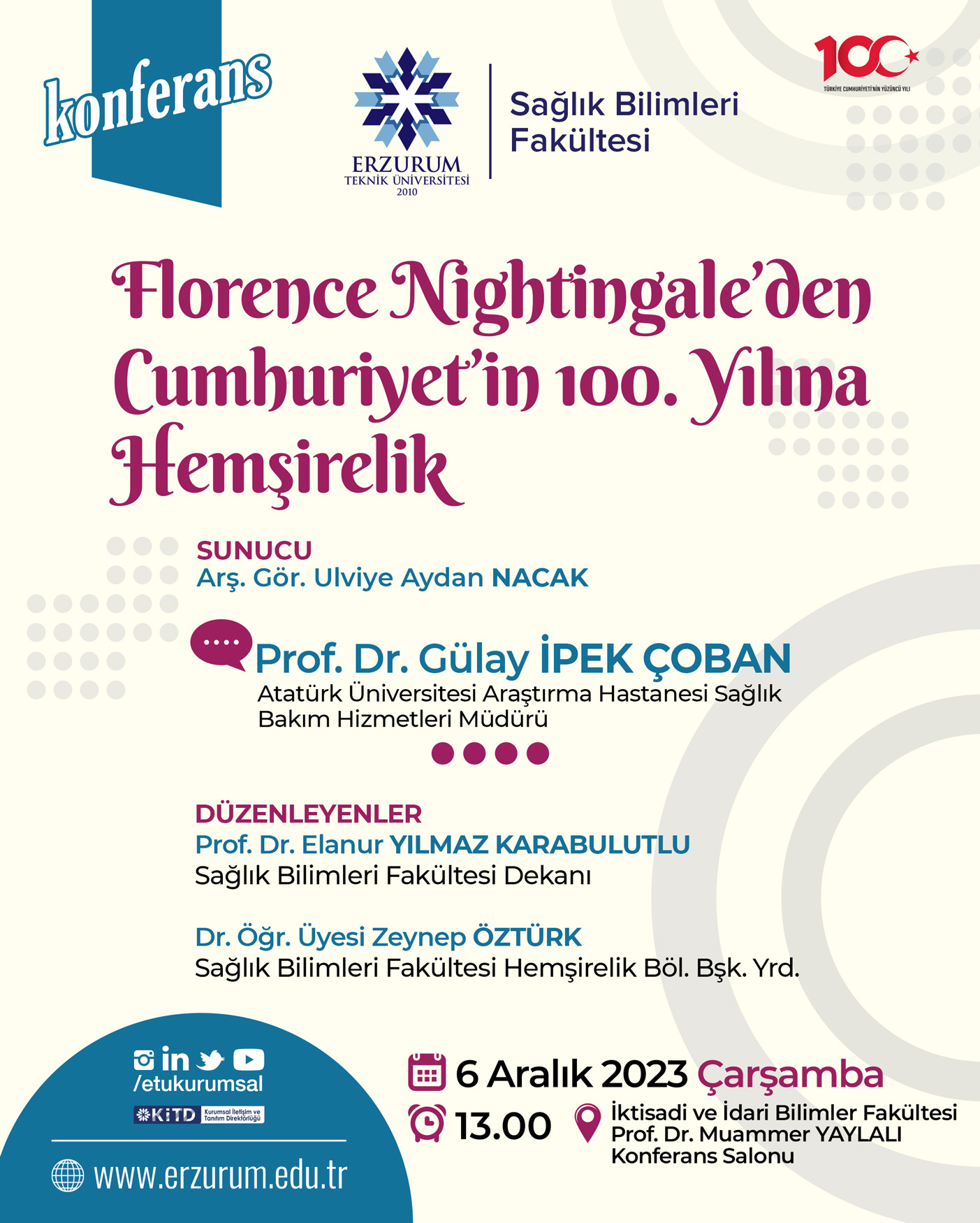 Konferans; "Florence Nightingale’den Cumhuriyet’in 100. Yılına Hemşirelik"
