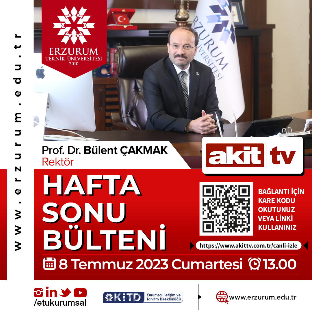 Rektörümüz Prof. Dr. Bülent ÇAKMAK, Akit TV "Hafta Sonu Bülteni"ne Konuk Olacak