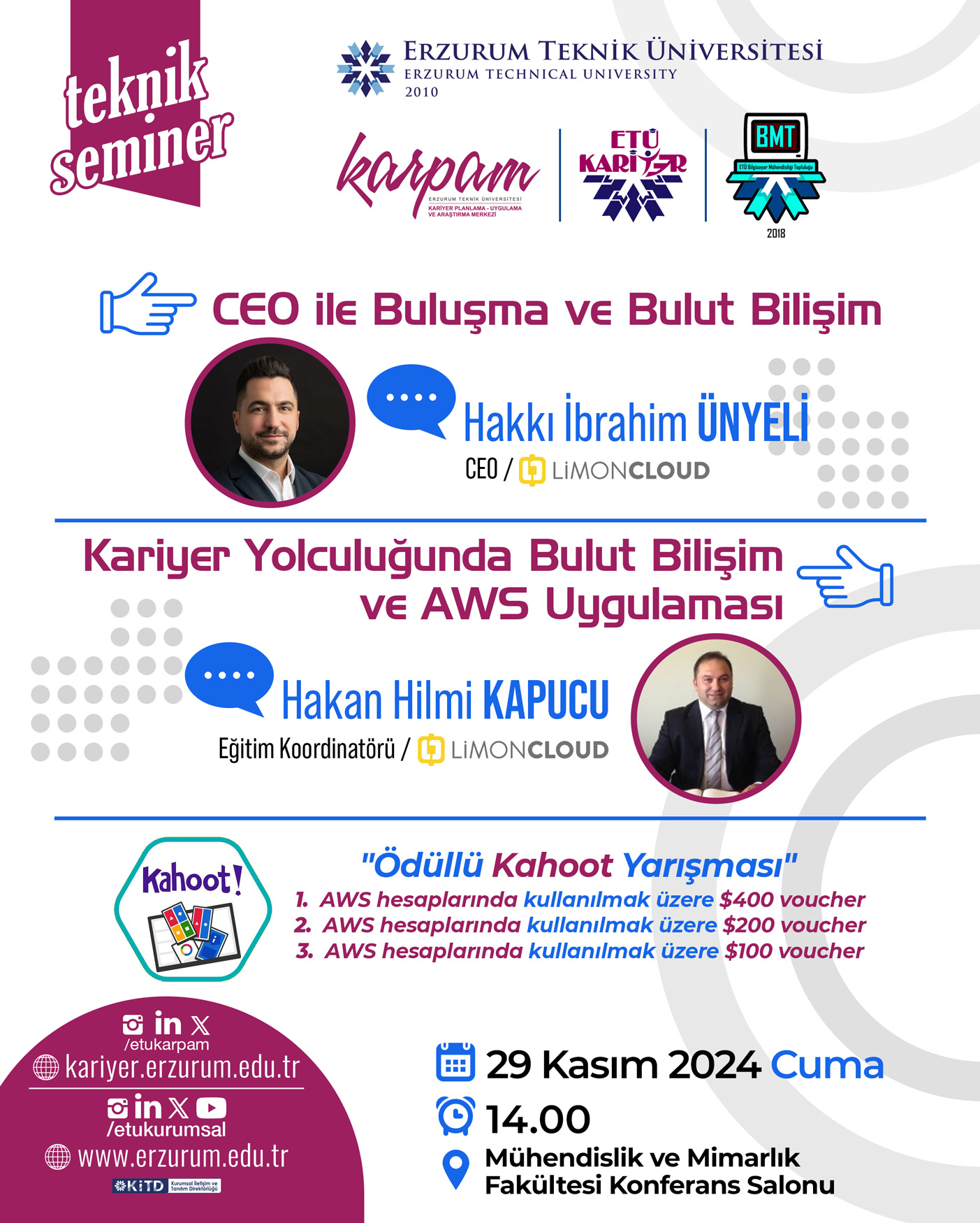 Lisanslı yazılımlar, kablosuz internet, kampüs dışı erişim gibi birçok konuda bilgi edinebilir, yardım talebinde bulunabilirsiniz.