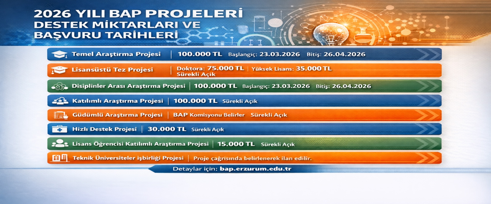 2026 Yılı BAP Projeleri Destek Miktarları ve Başvuru Takvimi Açıklandı