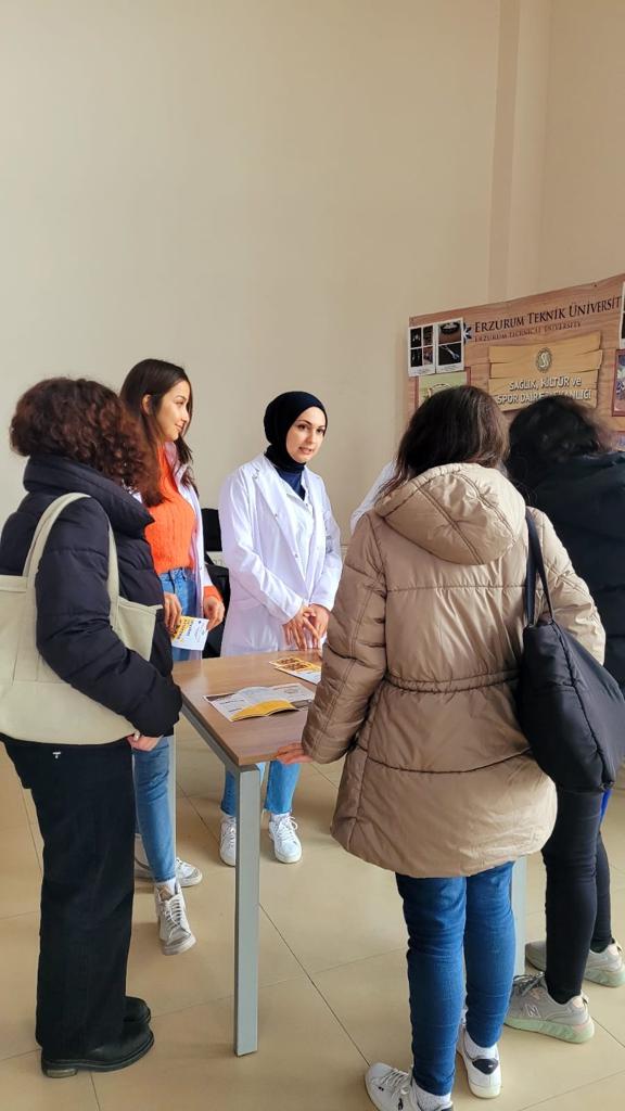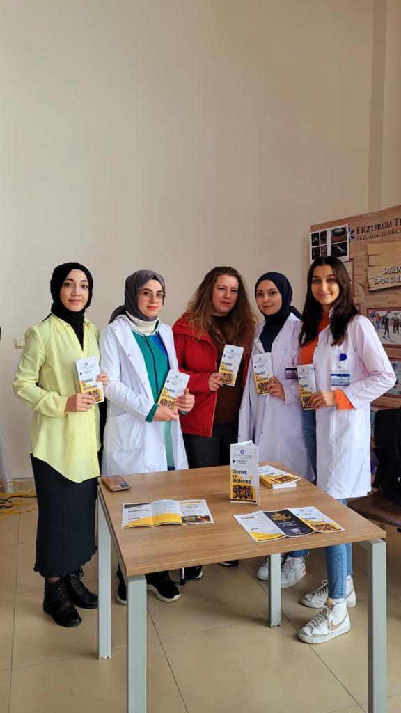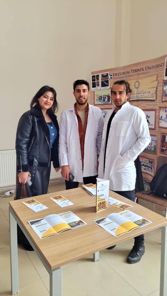 Öğrencilerimiz 14 Kasım Dünya Diyabet Gününde, 12.00-14.00 saatleri arasında yaşam merkezi binasında öğle yemeği için gelen öğrenci ve personellerimizin diyabet ve beslenme konusunda dikkatini çekmek istemiştir. Diyabet hastalığı, neden olan etmenler ve diyabet ve beslenme ilişkisi hakkında standa uğrayan öğrenci ve personellere bilgi verilmiştir. Hazırlanan broşürler de kullanılarak diyabet hastalığında nasıl beslenilmesi gerektiği anlatılmıştır.