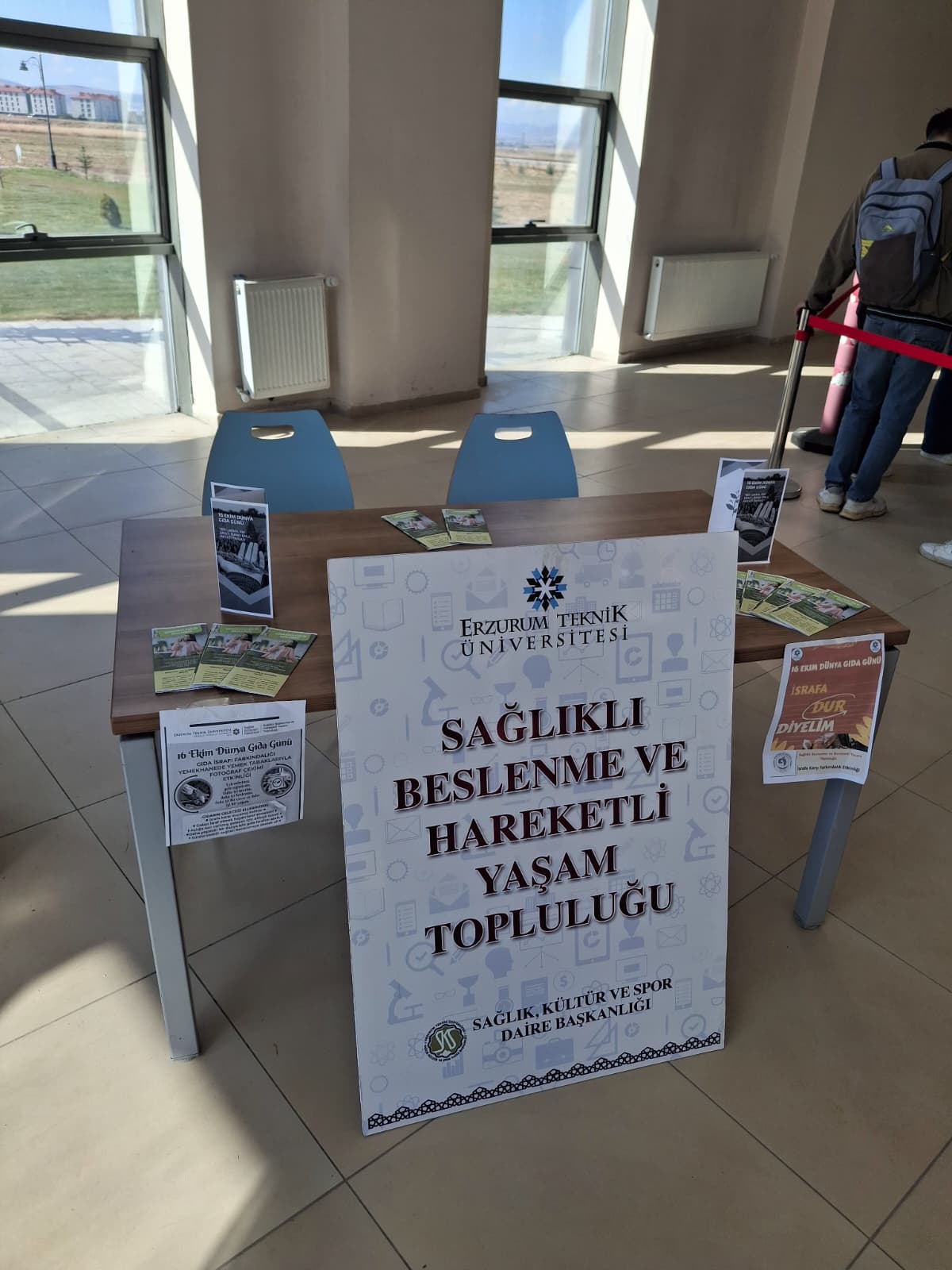 Sağlıklı Beslenme ve Hareketli Yaşam Topluluğumuz 16 Ekim Dünya Gıda Gününde stant etkinliği düzenleyerek üniversitemiz öğrencileri ve personeli için gıda israfı ve sürdürülebilir beslenme konusunda bilgilendirme yapmıştır. Etkinlik kapsamında sürdürülebilir beslenme konusunda bir broşür dağıtımı ve gıda israfına yönelik farkındalık oluşturmak amacıyla fotoğraf çekimi gerçekleştirilmiştir. Emeği geçen ve katılan herkese teşekkür ederiz.