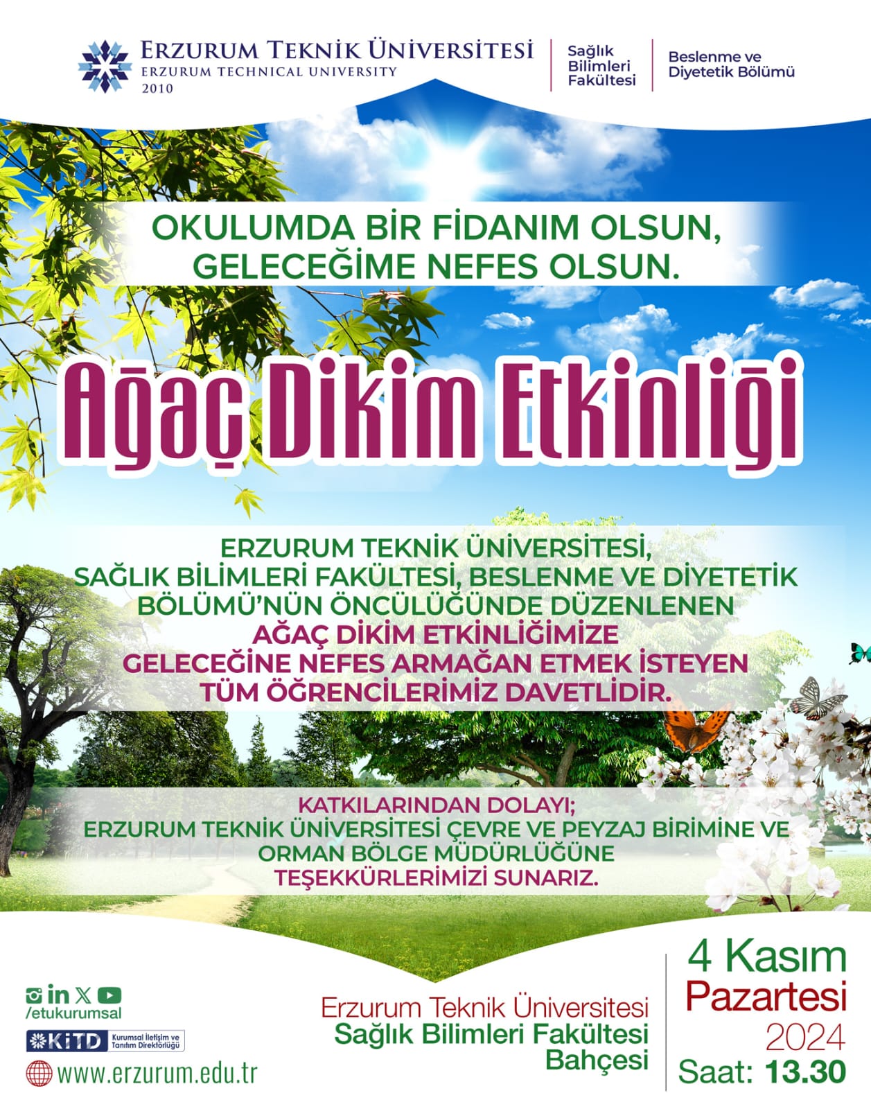 Erzurum Teknik Üniversitesi Sağlık Bilimleri Fakültesi Bahçesinde fidan dikim etkinliği düzenlendi. Emeği geçen ve etkinliğimize katılım sağlayan herkese teşekkür ederiz.