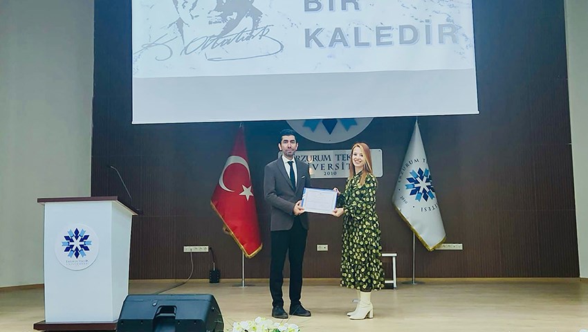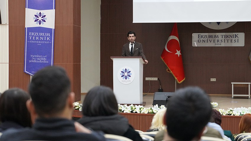Saygı duruşu ve İstiklal Marşı’nın okunması ile başlayan programa konuşmacı olarak katılan Doç. Dr. Mehmed Gökhan POLATOĞLU, Cumhuriyet döneminde Erzurum da iktisadi bakımdan büyük ilerlemeler kaydedildiğini ifade ederek, Erzurum'da kalkınma hamleleri adına kurulan Şeker Fabrikası, Yem Fabrikası, Et Kombinası, Tarım-Alet Ve Makinaları Fabrikası ve Ergaz ile Aşkale Çimento Fabrikası gibi özel girişimler hakkında dinleyicilere bilgi verdi ve sözlerini Mustafa Kemal Atatürk'ün "Her fabrika bir kaledir." sözünden hareketle; Cumhuriyet Dönemi'nde açılan bu fabrikalar ile birlikte Erzurum'da iktisadi bakımdan büyük ilerlemeler kaydetmiştir diyerek noktalandırdı. Konferans, Ekonomik ve Sosyal Araştırmalar Uygulama ve Araştırma Merkezi Müdürü Kübranur ÇEBİ KARAASLAN'nın teşekkür belgesi takdimi ile sona erdi.