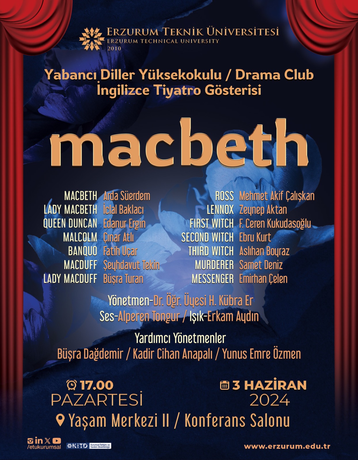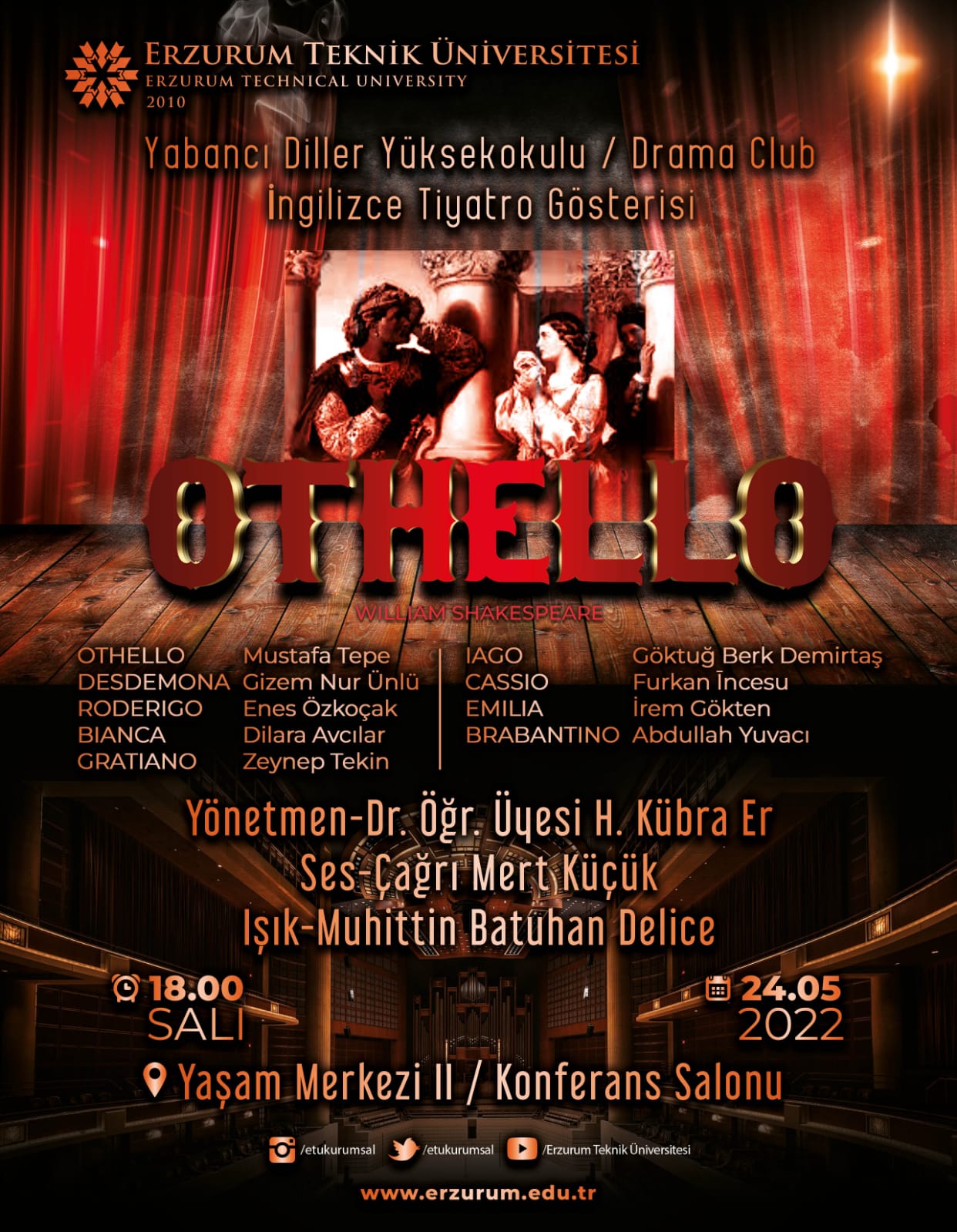 So far, the Drama Club has staged Shakespeare’s Macbeth, Othello and Romeo and Juliet. You can watch the performances on the Erzurum Technical University School of Foreign Languages YouTube channel.