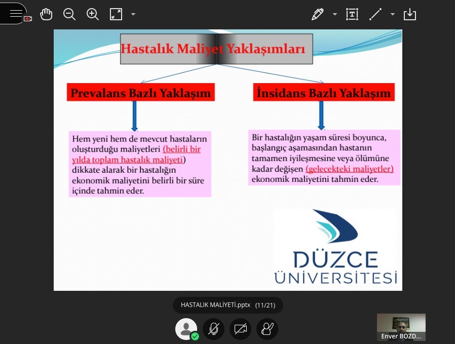 18.10.2023 tarihinde Prof. Dr. Enver BOZDEMİR tarafından Sağlık Ekonomisi Söyleşileri temasında Hastalık Maliyeti Analizi anlatılmıştır.