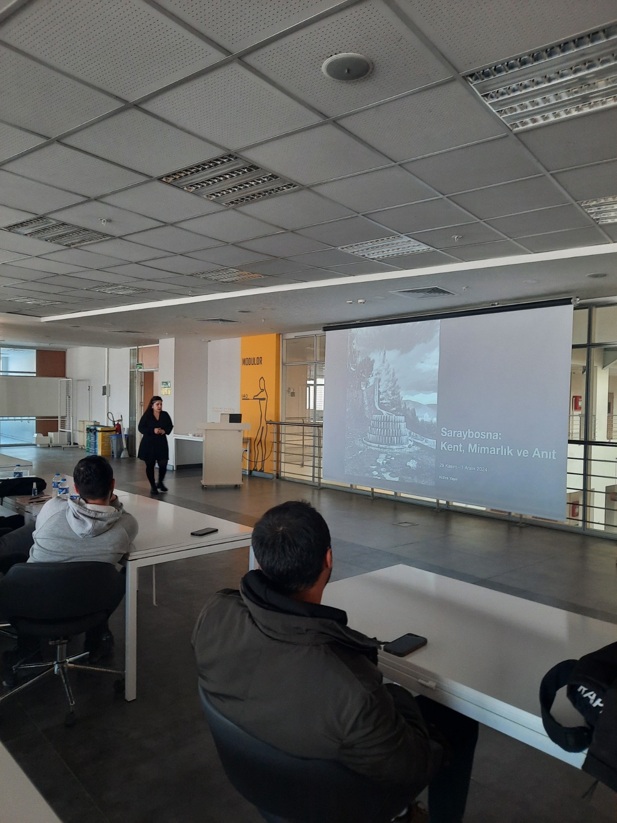Bölümümüz Arş. Gör. Kübra YAŞAR hocamız tarafından "Saraybosna: Kent, Mimarlık ve Anıt" adlı seminer gerçekleştirildi.