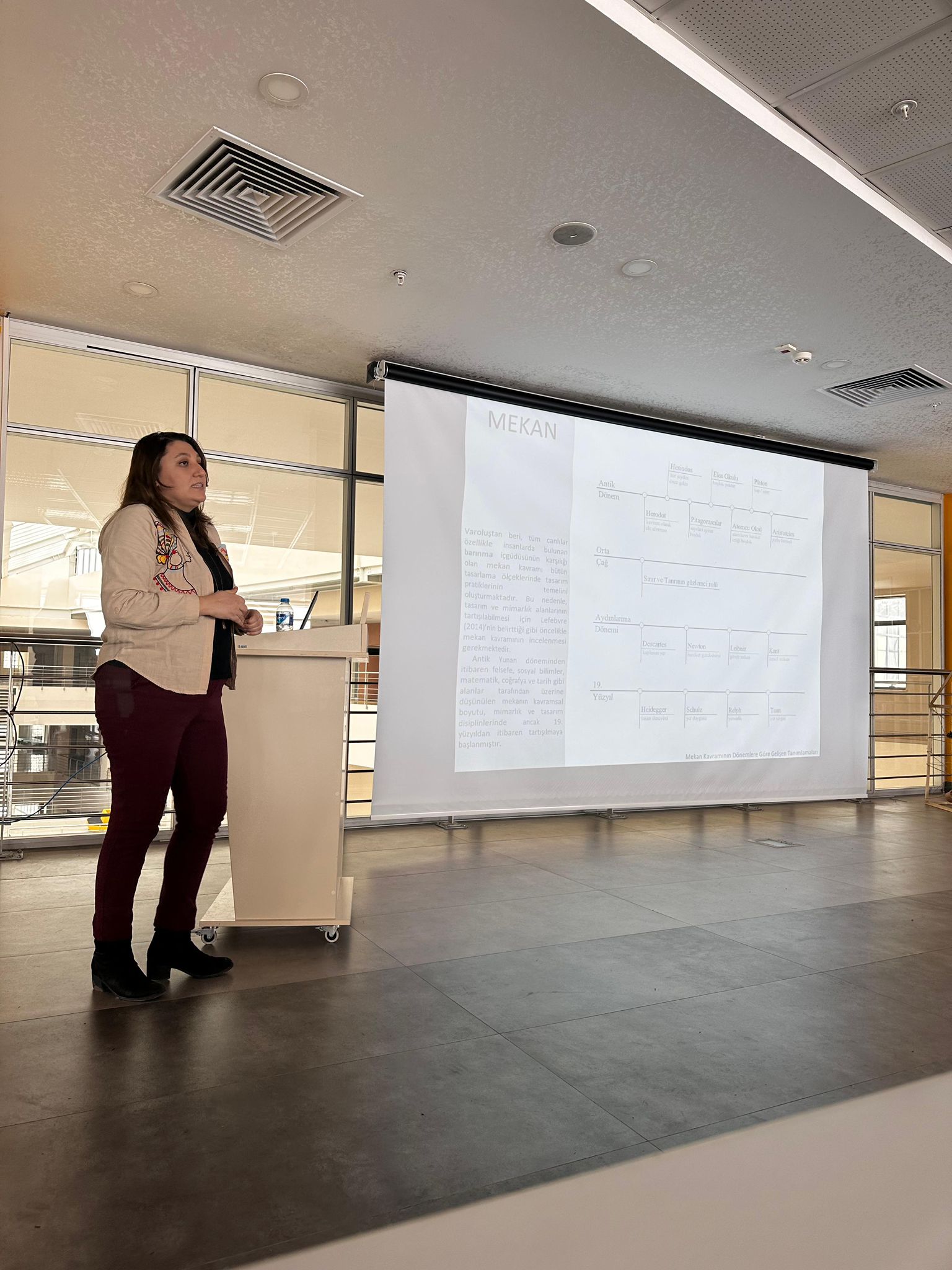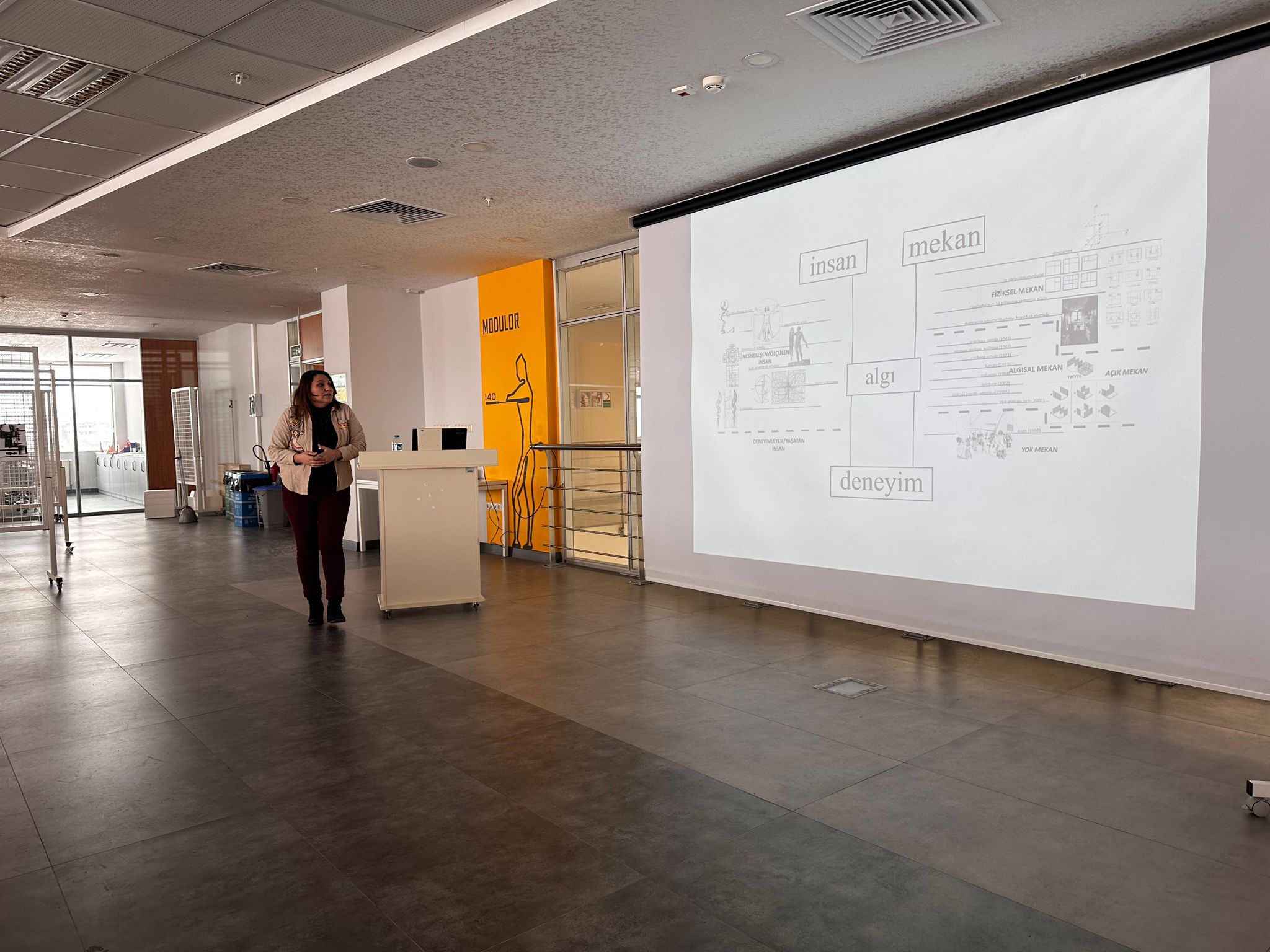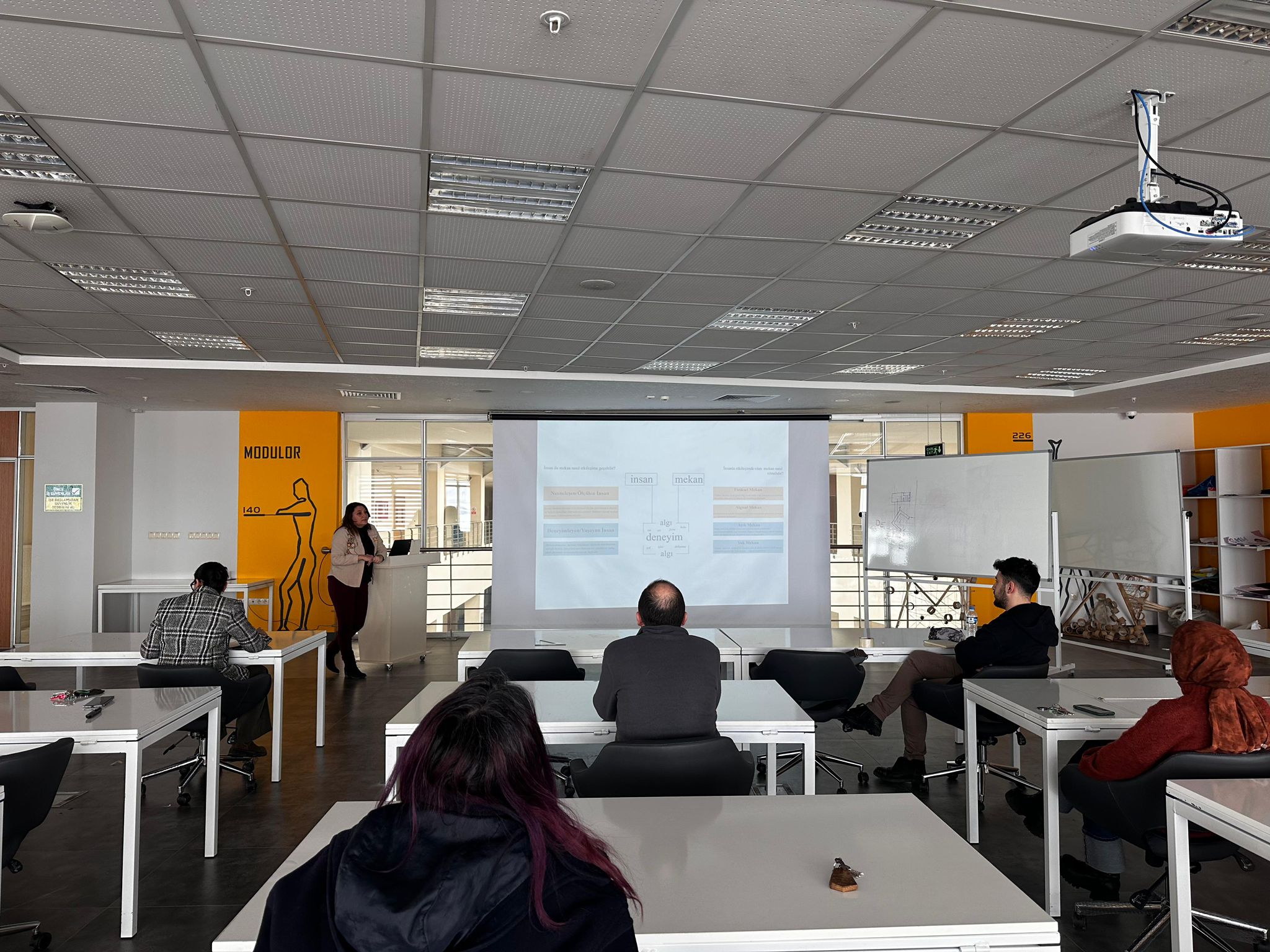 Bölümümüz Dr. Öğr. Üyesi Aslı TAŞ TAGHINEZHAD NOURIAN hocamız tarafından "Mekan Tasarımında Algı ve Deneyim" adlı seminer gerçekleştirildi.