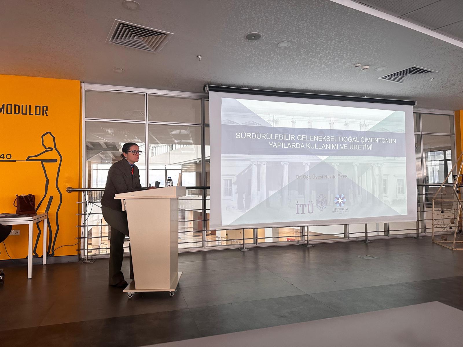 Bölümümüz Dr. Öğr. Üyesi Nazife ÖZER hocamız tarafından "Sürdürülebilir Doğal Çimentonun Yapılarda Kullanımı ve Üretimi" adlı seminer gerçekleştirildi.
