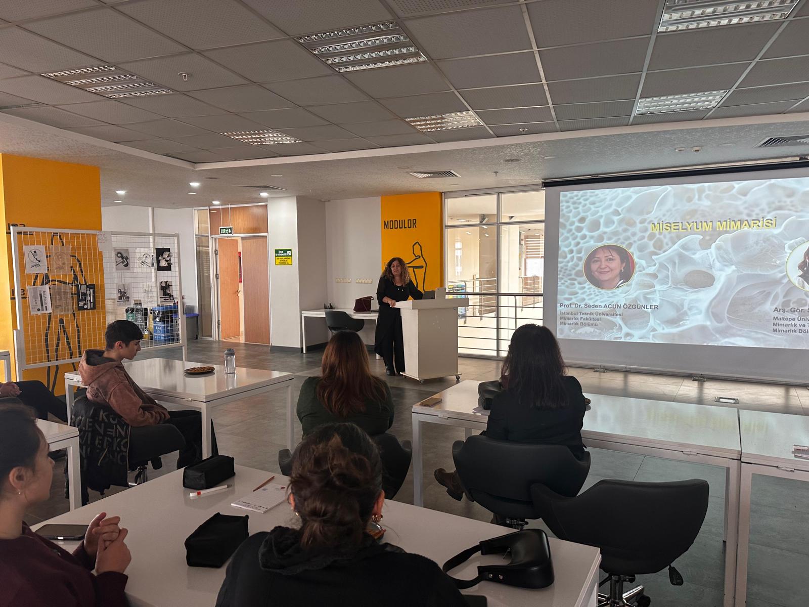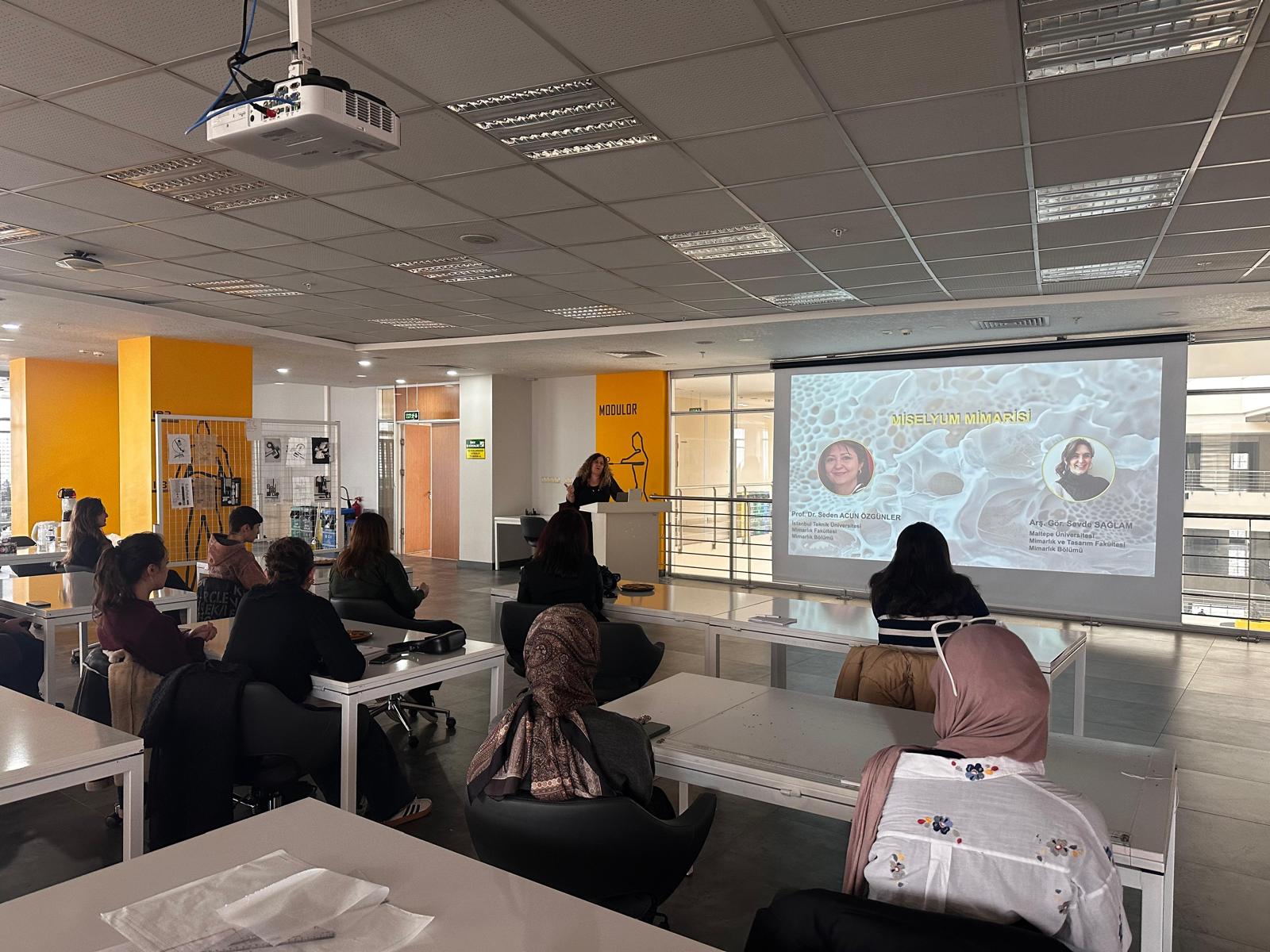 İstanbul Teknik Üniversitesi Mimarlık Bölümü'nden Prof. Dr. Seden ACUN ÖZGÜNLER ve Maltepe Üniversitesi Mimarlık Bölümü'nden Arş. Gör. Sevde SAĞLAM hocalarımız "Miselyum Mimarisi" adlı seminer sunumunu gerçekleştirildi.