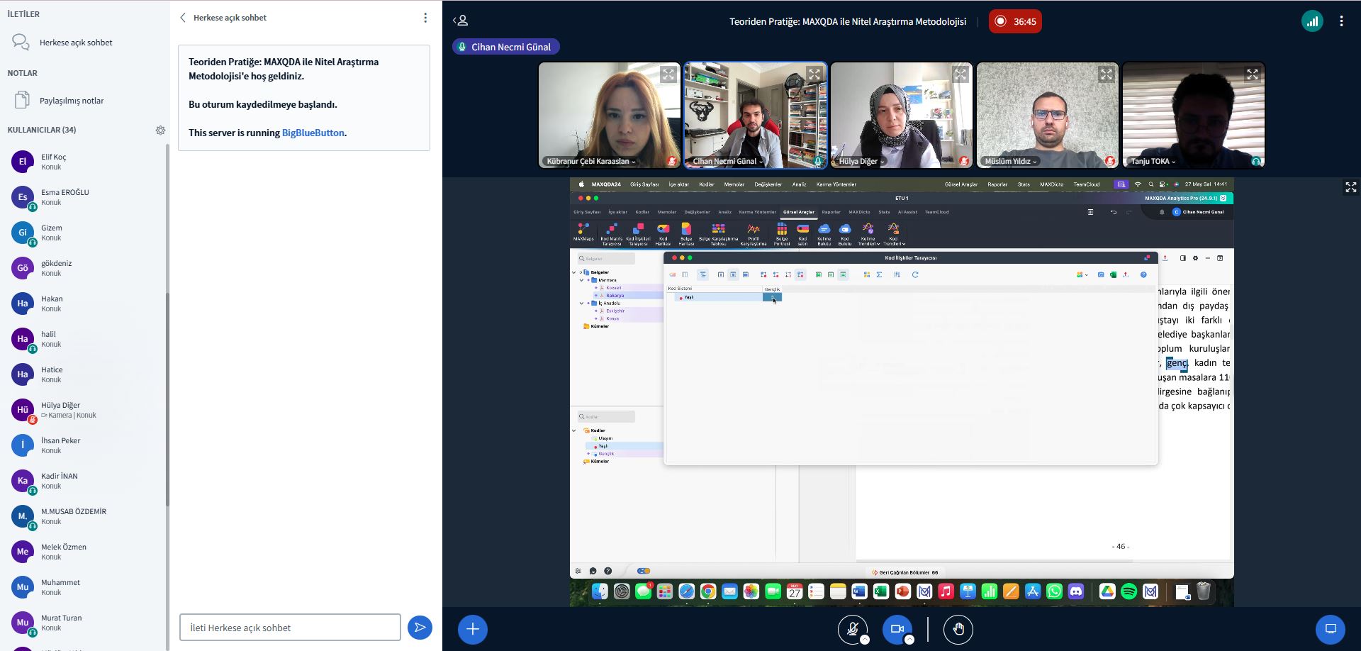 27 Mayıs Salı günü saat 14:00'da Dr. Öğr. Üyesi Cihan Necmi Günal'ın "Teoriden Pratiğe: MAXQDA ile Nitel Araştırma Metodolojisi" başlıklı eğitim gerçekleşmiştir.