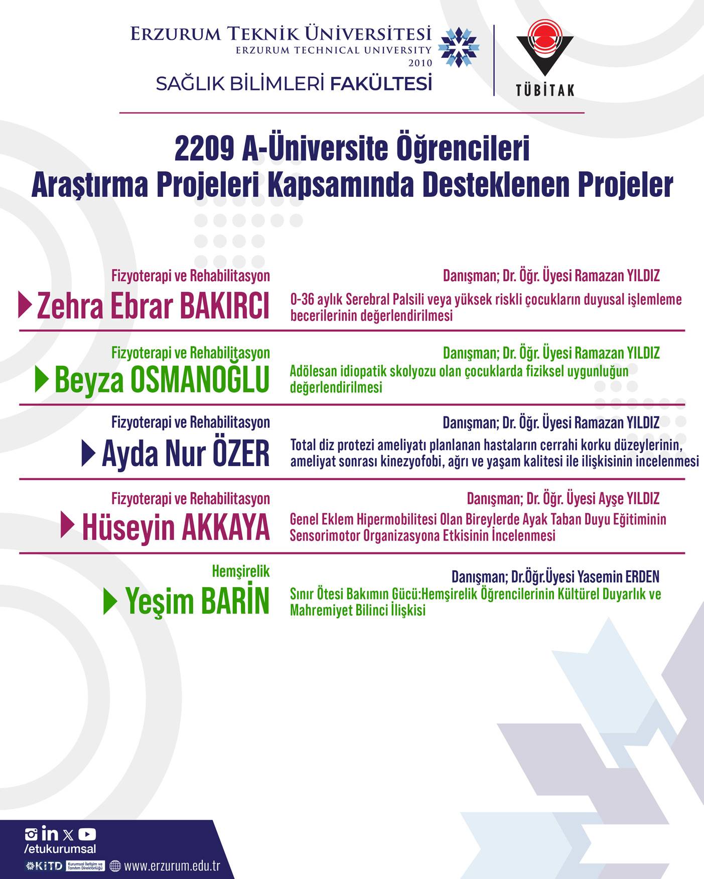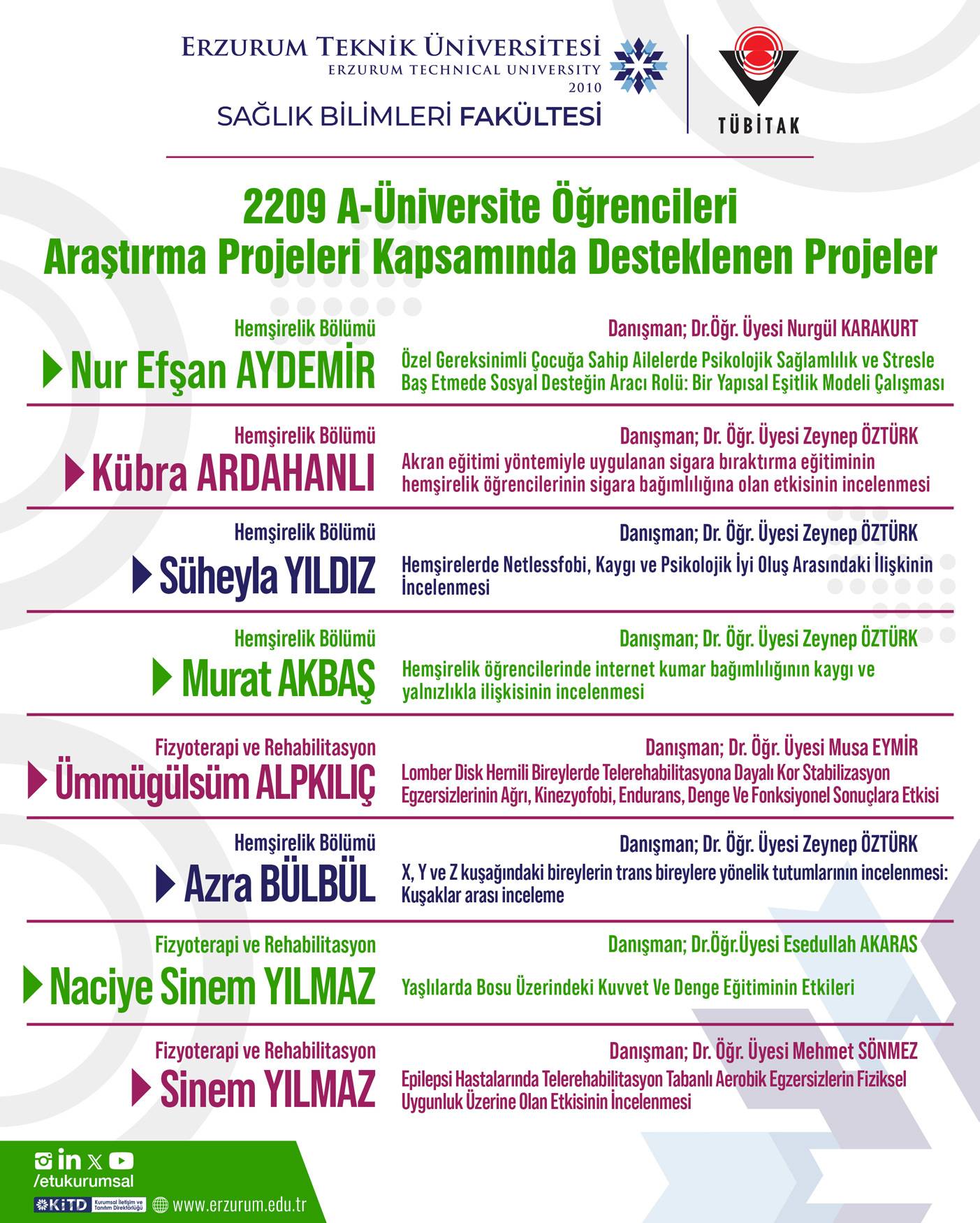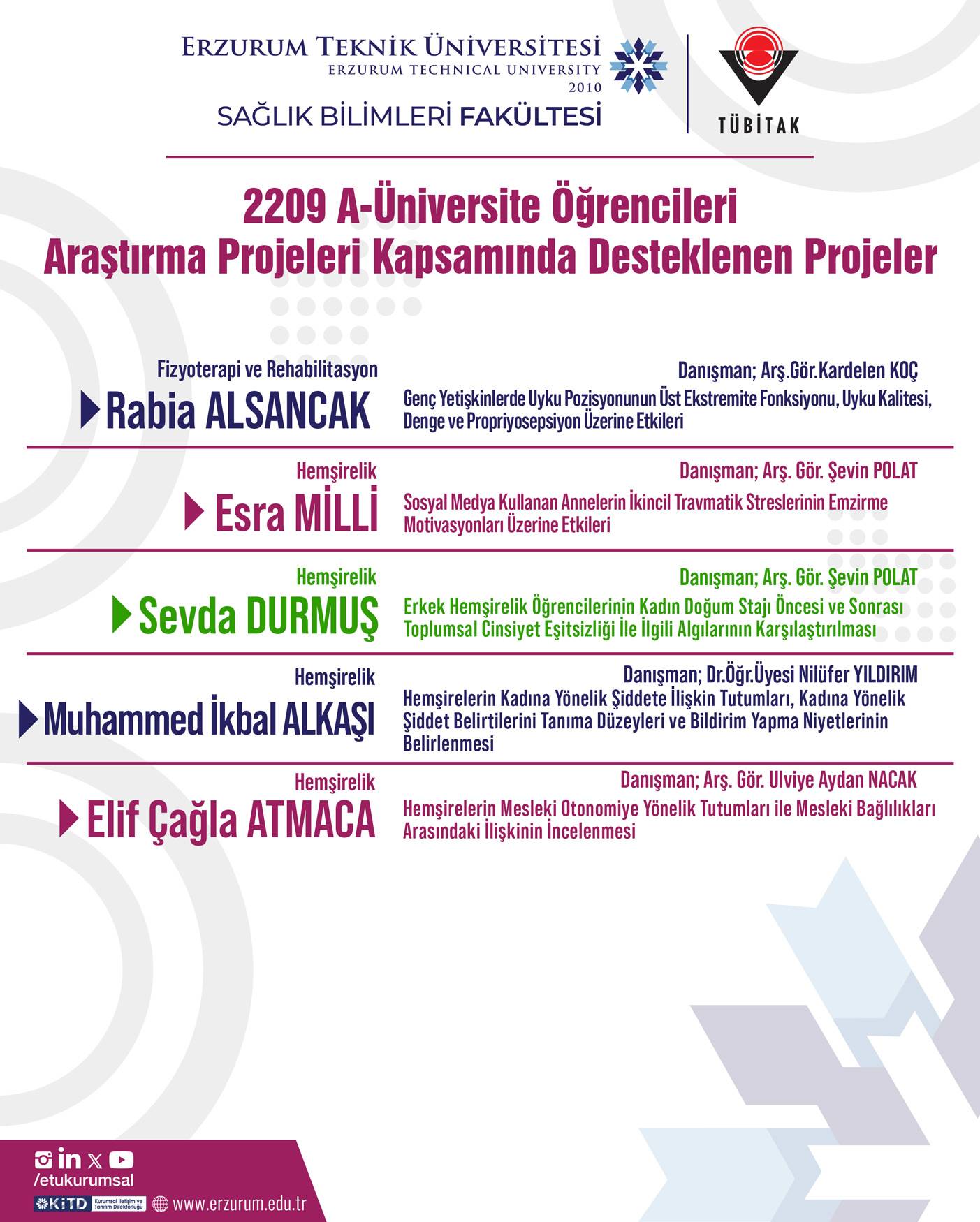ETÜ Hemşirelik Bölümü 2209-A - Üniversite Öğrencileri Araştırma Projeleri Destekleme Programı 2024 Yılı 1.Dönem Çağrısı Destek Hakkı Kazanan Projelerin Listesi